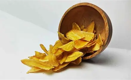 Kupas kulit pisang satu per satu, lalu iris tipis menggunakan alat serut atau pisau tajam. Semakin tipis irisan, semakin renyah hasilnya nanti.