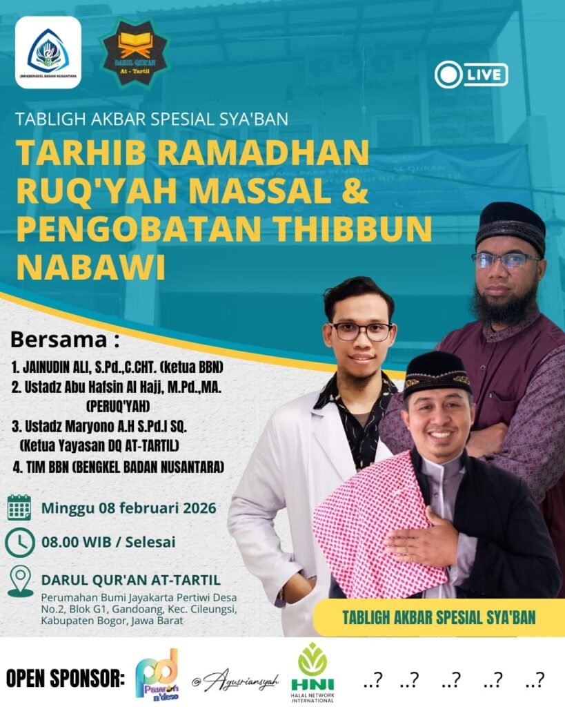 Mari bersihkan diri lahir dan batin melalui kegiatan GRATIS untuk umat, sebagai ikhtiar mendekatkan diri kepada Allah ﷻ, menenangkan jiwa, dan memperkuat iman sebelum memasuki Ramadhan.